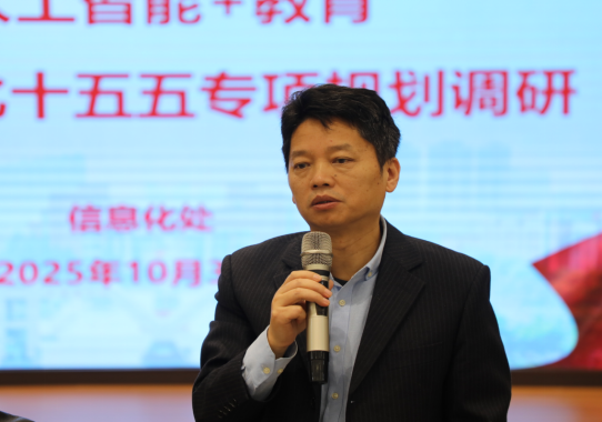 信息化处处长张成作了题为《人工智能赋能教育教学与“十五五”信息化发展路径》的专题汇报,系统梳理了学校当前AI赋能教育教学工作的发展现状,重点从“人工智能+”与 “数据要素×” 两个关键维度,阐述了学校“十五五”信息化发展的战略思路与实施路径。